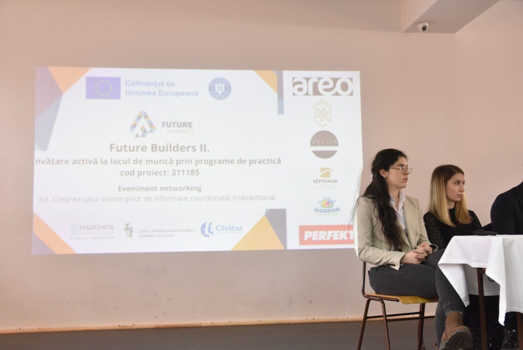 Unul dintre evenimentele importante ale proiectului Future Builders 2 a avut loc intr-o atmosfera deschisa si prietenoasa, reunind elevi si reprezentanti ai mediului de afaceri intr-un dialog valoros despre viitorul pietei muncii. Intalnirea a avut ca scop conectarea directa a tinerilor cu companiile locale, pentru ca acestia sa afle din prima sursa ce oportunitati ii asteapta, ce competente sunt cautate si cum pot aborda cu incredere procesul de aplicare pentru un loc de munca.